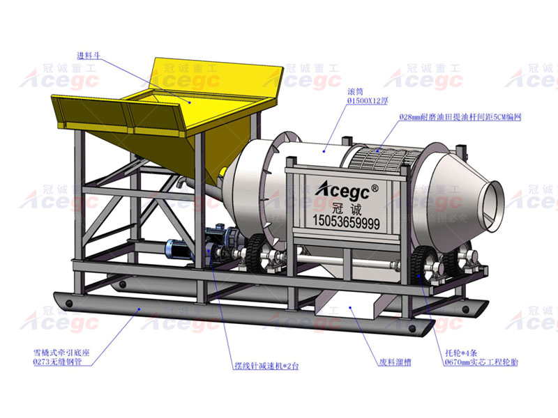 80-120噸/小時移動式1544滾筒洗砂洗礦機效果圖: